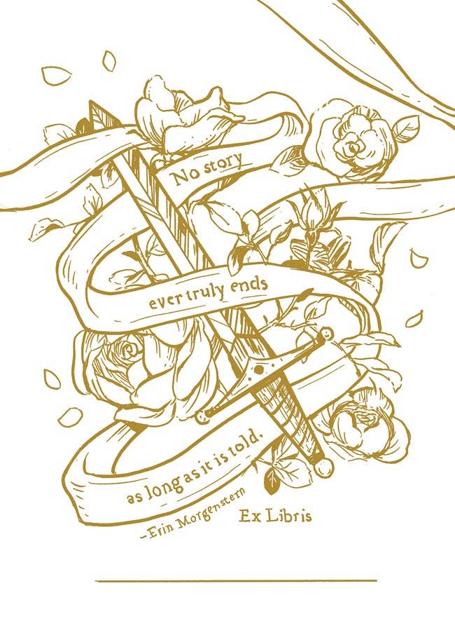 If you find yourself lending out books to friends, add one of these bookplates to the inside front page of your book with your name and friends will always know who to give it back to. - 10 pack comes in a string tie envelope - gold metallic and black ink - self-adhesive matte sticker paper - 2.5 × 3.5 in/ 66 × 90 mm Bookplates, or ex libris (Latin for 'from the library of'), are used to identify the owner of a book and have been used since the 1400s. This vintage bookplate style is inspired by the golden age of illustration in the early 1900s. These ex libris bookplate stickers have been printed in black and a special metallic gold ink making these a beautiful addition to your books. Perfect gift for your bibliophile friends, teachers, librarians or for your own collection of books. Just write your name in the space, peel off the backing and add a bit of a personalised touch to your books. Drawn with a dip pen and ink, printed in Australia.