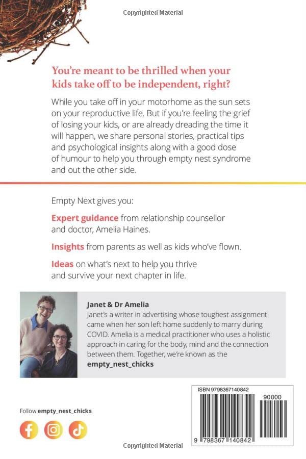 While you take off in your motorhome as the sun sets on your reproductive life. But if you're feeling the grief of losing your kids, or are already dreading the time it will happen, we share personal stories, practical tips and psychological insights along with a good dose of humour to help you through empty nest syndrome and out the other side.